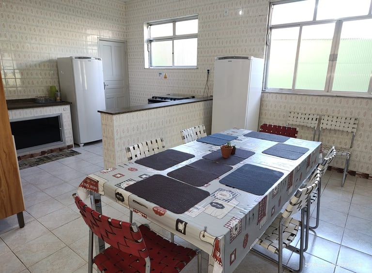 Explore nossas instalações e sinta-se em casa! Quartos confortáveis, cozinha compartilhada com 2 geladeiras frost free, um freezer, fogão de 5 bocas, microondas e um lavanderia ampla, banheiros espaçosos e tudo para tornar sua estadia inesquecível.